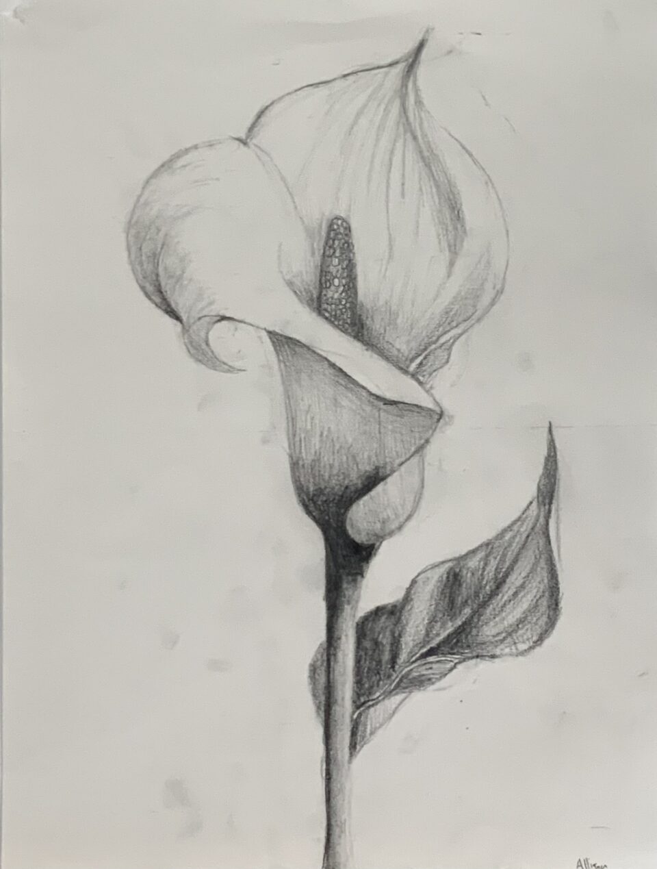 Subjects I like math and reading. In my free time, I enjoy watching movies, playing video games, and journaling. My mediums are graphite, watercolor, marker,colored pencils.– Allison Jin, 2/8/2025