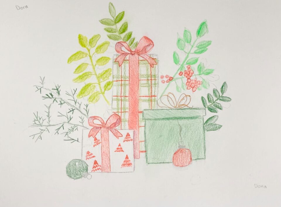 I like to do crafts, playing the violin, ice skating, and also like to play the drums and draw pictures with watercolor.
